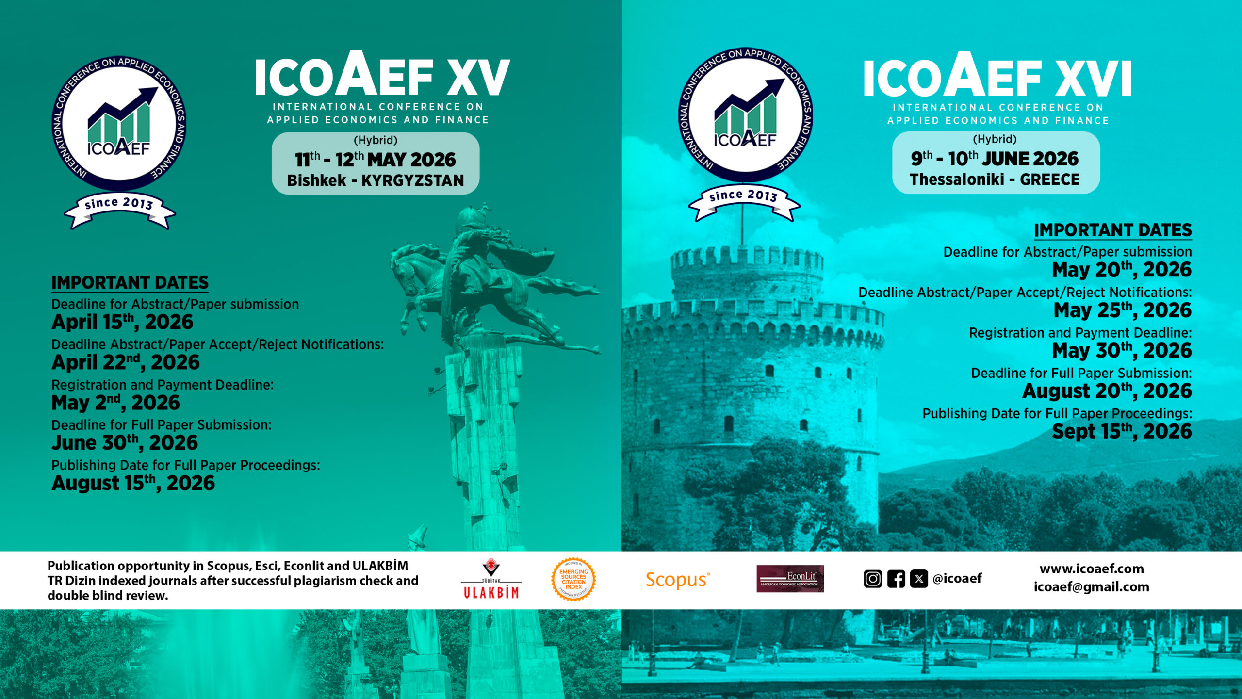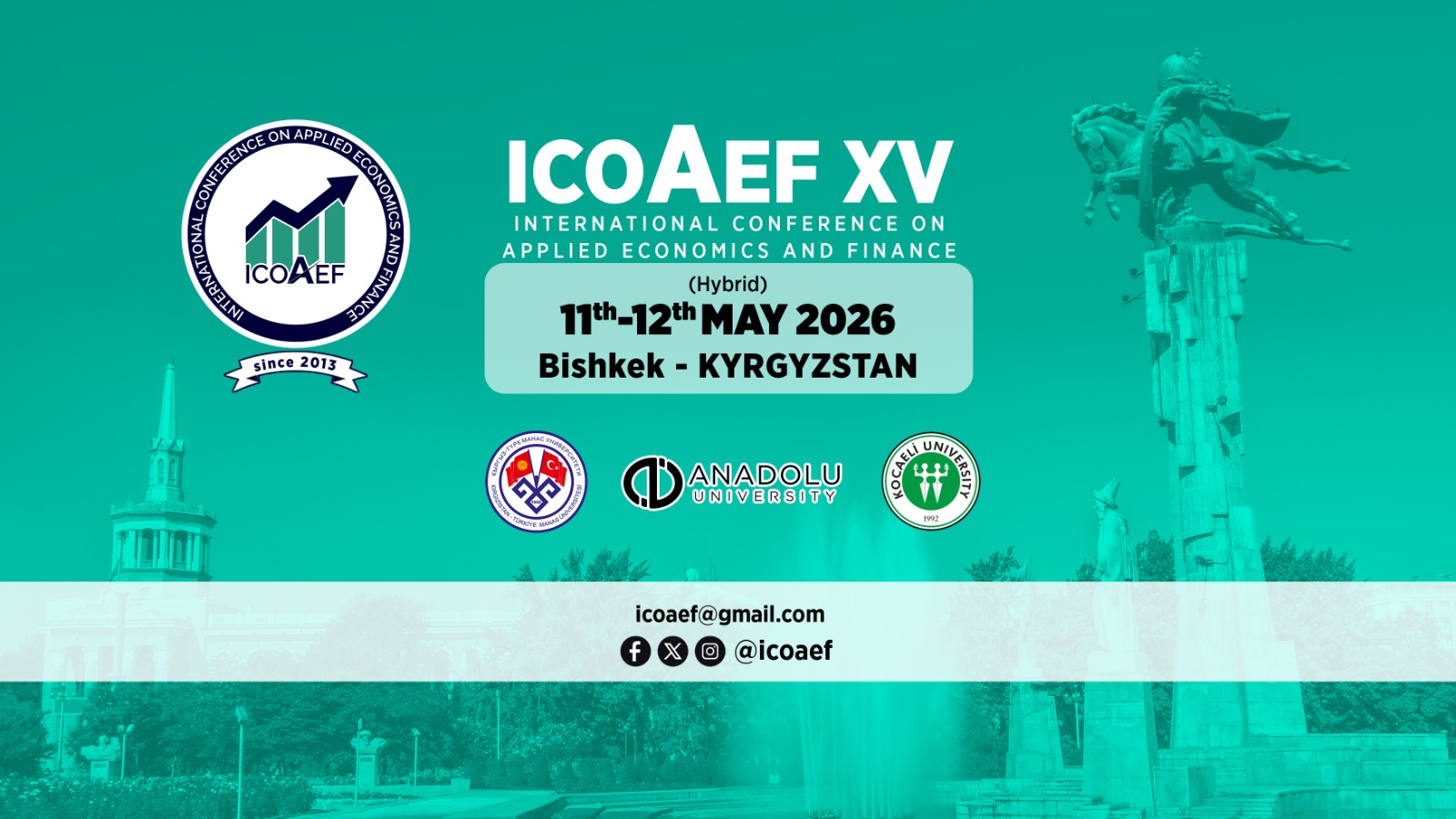 International Conference on Applied Economics and Finance (ICOAEF XV) will be held on May 11th(Hybrid) – 12th (Online), 2026 in Kyrgyz-Turkish Manas University in Bishkek/Kyrgyz Republic.